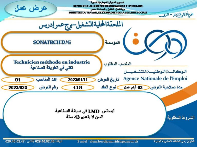 عروض عمل بشركة سوناطراك SONATRACH DG برج عمر ادريس في تخصصات الادارية والتقنية